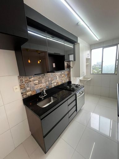 São 2 dormitórios, 1 banheiro, cozinha americana. Todo rico em armário, tudo em ótimo estado!